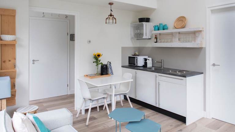 Die Apartments in der Soeren Lounge sind freistehend und bieten Ihnen viel Privatsphäre. Jedes Apartment verfügt über eine Klimaanlage und eine eigene Terrasse mit einem gemütlichen Sitzbereich im Freien. Im Inneren finden Sie ein geräumiges Wohnzimmer mit Kabel-TV, eine Küchenzeile mit einer Nespresso-Maschine und einem Wasserkocher. Das eigene Bad ist mit einer Badewanne oder einer Dusche und kostenfreien Pflegeprodukten ausgestattet.