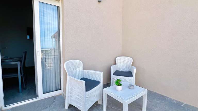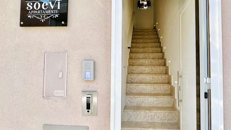 Soevi Appartamenti bietet Übernachtungsmöglichkeiten mit Meerblick und einem Balkon. Die Ferienwohnung ist klimatisiert und verfügt über ein Schlafzimmer, ein Wohnzimmer, eine voll ausgestattete Küche sowie ein Badezimmer. Es stehen Handtücher und Bettwäsche zur Verfügung.