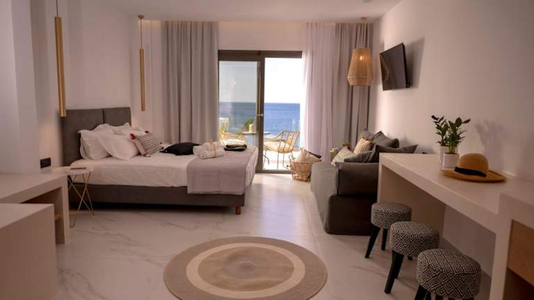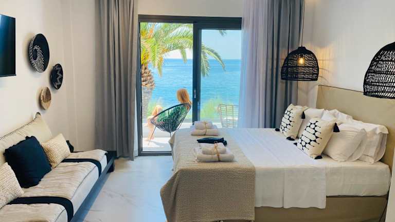 Das klimatisierte Apartment im Sofi Mar - Plomari - The place to be bietet einen atemberaubenden Meerblick und eine komfortable Terrasse. Die Unterkunft verfügt über eine voll ausgestattete Küchenzeile mit einem Kühlschrank, einem Kochfeld und einer Kaffeemaschine. Ein Flachbild-TV sorgt für Unterhaltung und das moderne Badezimmer ist mit einer Dusche, kostenfreien Pflegeprodukten und einem Haartrockner ausgestattet. Kostenloses WLAN steht Ihnen ebenfalls zur Verfügung.