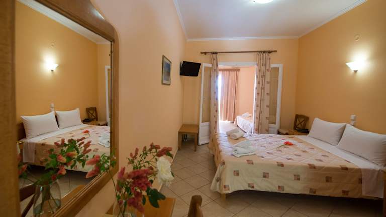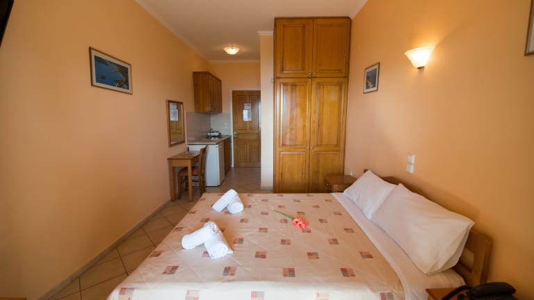 Die Zimmer sind mit Klimaanlage, Balkon oder Terrasse (meist mit Meerblick), einem Doppelbett sowie einem Badezimmer mit Dusche und Badewanne ausgestattet. Zudem sind ein Kühlschrank, ein Herd, ein Wasserkocher, ein Safe, ein Schreibtisch, ein Flachbild-TV, Sat-TV und WLAN vorhanden. Familienzimmer sind für Gäste mit Kindern verfügbar.
