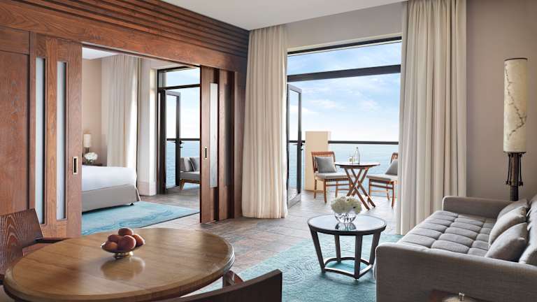 Entdecken Sie geräumige und elegant gestaltete Zimmer, Suiten und private Villen. Jeder Bereich ist ein Rückzugsort mit Komfort, privaten Balkonen oder Terrassen, luxuriösen Annehmlichkeiten und individuellem Service. Hotelzimmer • Classic Room – Ideal für Paare oder Alleinreisende, die Ruhe und Schlichtheit suchen. Mit privater Terrasse mit Blick auf die tropischen Gärten des Resorts, einem King-Size- oder Twin-Sofitel-MyBed™, einem halb offenen Bad mit luxuriösen L’Occitane-Produkten, kostenfreiem WLAN und Minibar. Bettentyp: King oder Twin. • Luxury Room – Perfekt für romantische Auszeiten. Genießen Sie atemberaubenden Blick auf den Arabischen Golf von Ihrem privaten Balkon. Helle, luftige Räume mit allem Komfort von MyBed bis zu L’Occitane-Pflegeprodukten. •Suiten • Junior Suite – Geräumig und stilvoll, mit separatem Wohnbereich, luxuriösem Bad mit Badewanne und exklusivem Zugang zur Premier Lounge. Inklusive Frühstück, Nachmittagstee und Canapés am Abend. • Prestige Suite – Im Hauptgebäude gelegen, mit separatem Wohnbereich und großem Schlafzimmer mit Meerblick. Inklusive Premier Lounge Zugang mit persönlichem Service und täglichen kulinarischen Angeboten. • Two Bedroom Opera Suite – Ideal für Familien oder Gruppen. Zwei Schlafzimmer mit Kingsize-Betten, großzügiger Wohnbereich, große Terrasse mit Blick auf den Arabischen Golf oder die Palme. Inklusive vollständigem Zugang zur Premier Lounge. • Signature Palm Suite – Tropisch inspirierte Suite mit Himmelbett, Gartenblick und Badezimmer mit freistehender Badewanne. Inklusive persönlichem Butler-Service für ein exklusives Erlebnis. Apartments & Villen • One-Bedroom Apartment – Komfortabler Raum mit Kingsize-Schlafzimmer, voll ausgestatteter Küche, Wohn- und Essbereich, Gästebad und großer Terrasse mit Gartenblick. Ideal für Paare oder Alleinreisende. • Two-Bedroom Apartment – Für Familien oder Gruppen. Hauptschlafzimmer mit Kingsize-Bett, zweites Schlafzimmer mit Twin-Betten und eigenem Bad, großer Wohn- und Essbereich, Küche, Gästebad, großzügige Terrasse mit Gartenblick. • Palm Villa – 742 m² Innenfläche | 1.216 m² Garten; Direkt am Strand mit privatem Garten, Pool, BBQ-Bereich und weitläufigen Wohnbereichen. 4 Schlafzimmer, für große Familien oder Gruppen. Highlights: Privater Eingang, direkter Zugang zum Strand, großzügiger Außenbereich zum Essen und Entspannen. Max. Belegung: 8 Erwachsene + 1 Kind. • Riviera Villa – 742 m² Innenfläche | 825 m² Garten; Zeitlose Eleganz & tropische Abgeschiedenheit, 4 Schlafzimmer, privater Pool und Garten für entspannte Momente. Max. Belegung: 8 Erwachsene + 1 Kind. • Eden Villa – 742 m² Innenfläche | 447 m² Garten; Chic und ruhig mit privatem Jacuzzi und Pool, 4 Schlafzimmer, liebevoll gestaltet für ein entspanntes Erlebnis. Max. Belegung: 8 Erwachsene + 1 Kind. • Beach Villa – 486 m² Innenfläche | 201 m² Garten; Stilvolle 3-Schlafzimmer-Villa direkt am Strand, ideal für Familien. Ruhiger Gartenbereich, nur wenige Schritte vom Meer entfernt.