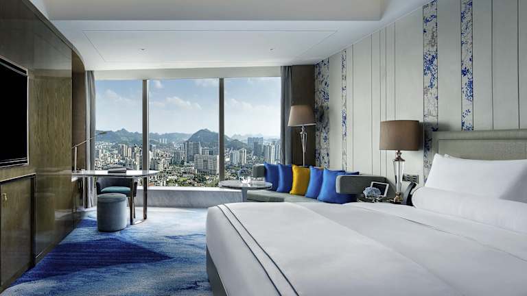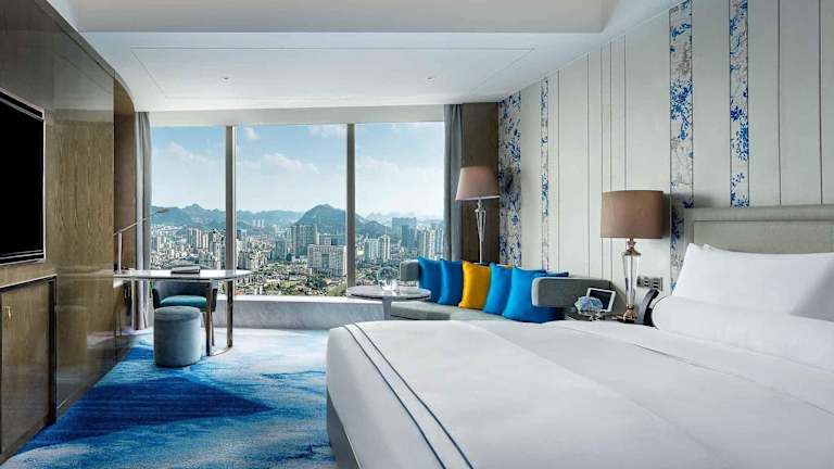 Das Sofitel Guiyang Hunter bietet insgesamt 274 klimatisierte Zimmer und Suiten. Die Ausstattung umfasst großzügige und gemütliche Räume mit raumhohen Fenstern, die einen Blick auf die Stadt Guiyang ermöglichen. Ergänzend sind zwei Ballsäle und mehrere funktionale Räumlichkeiten mit modernen audiovisuellen Technologien vorhanden, die ebenfalls viel Tageslicht bieten.