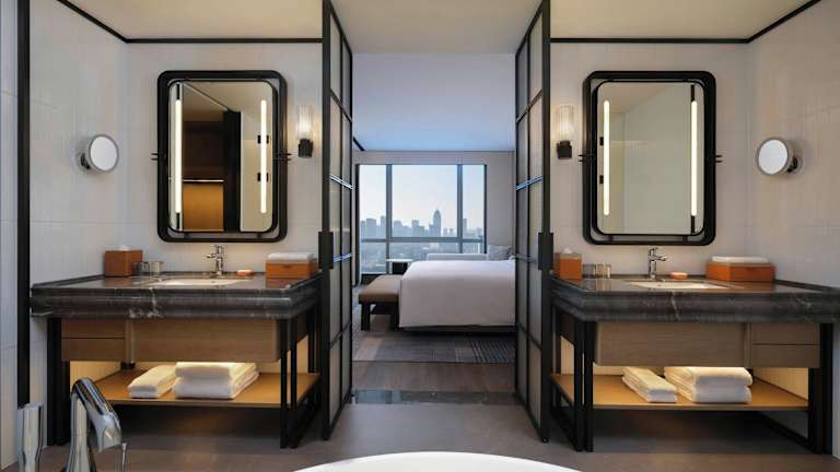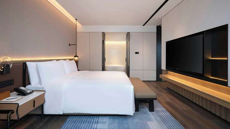 Das Sofitel Ningbo bietet 291 Nichtraucherzimmer auf 22 Etagen. Die Zimmer sind über einen Aufzug erreichbar und verfügen über eine moderne Ausstattung mit Klimaanlage, Heizung, Safe, Kaffee- und Teezubereitungsmöglichkeiten, Minibar und kostenlosem WLAN. Die Badezimmer sind mit einer separaten Badewanne und Dusche, Haartrockner und Bademänteln ausgestattet. Einige Zimmer sind rollstuhlgerecht und Familienzimmer stehen ebenfalls zur Verfügung.