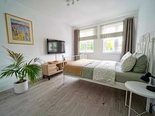 Die Unterkunft beinhaltet eine voll ausgestattete Küche, die mit einem Kühlschrank, Geschirrspüler, Ofen, Herdplatte, Kaffeemaschine und Wasserkocher ausgestattet ist. Dies ermöglicht den Gästen die Zubereitung eigener Mahlzeiten.