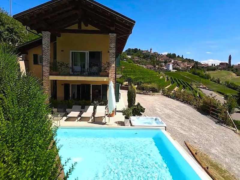 Die Sogno in Langa - Luxury Villa in Monforte d'Alba bietet luxuriöse Unterkünfte mit erstklassigem Service und modernen Annehmlichkeiten. Genießen Sie den kostenlosen WLAN-Zugang, die Klimaanlage und den Zugang zu einem wunderschönen Garten mit Außenpool. Das kontinentale Frühstück oder das Frühstück vom Buffet am Morgen verspricht einen gelungenen Start in den Tag. Entspannen Sie auf der Sonnenterrasse und erkunden Sie die umliegenden Städte wie Alba und Asti. Der internationale Flughafen Cuneo ist nur eine kurze Fahrt entfernt.