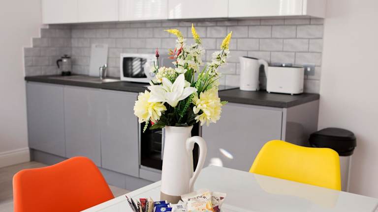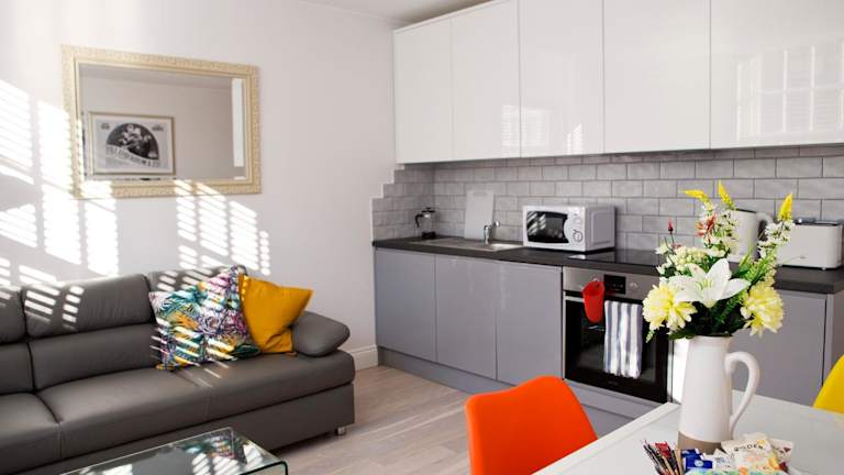 Die Zimmer sind mit einem Sitzbereich, einer Waschmaschine und einer voll ausgestatteten Küche eingerichtet, die einen Kühlschrank, einen Geschirrspüler, einen Ofen, eine Herdplatte und einen Wasserkocher umfasst. Jedes Zimmer verfügt über ein eigenes Badezimmer mit kostenlosen Pflegeprodukten und einem Haartrockner.