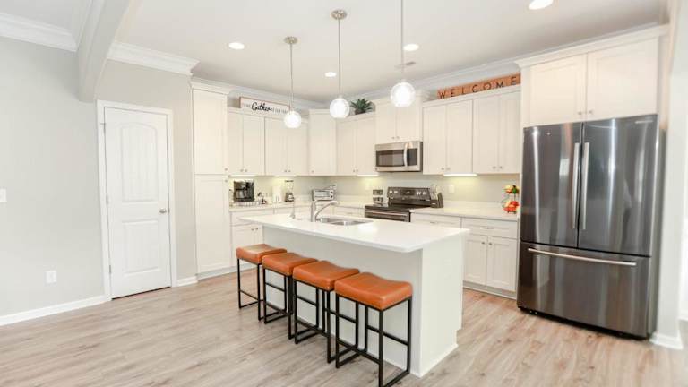 Die Unterkunft bietet eine gut ausgestattete Küche mit Kühlschrank, Geschirrspüler und Ofen.