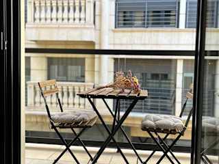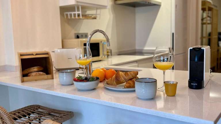 Die Ferienwohnung besteht aus einem Schlafzimmer und einem Badezimmer. Zur Ausstattung gehören Bettwäsche, Handtücher, ein Flachbild-TV, eine voll ausgestattete Küche sowie ein Balkon mit Stadtblick.