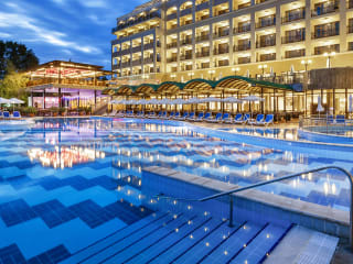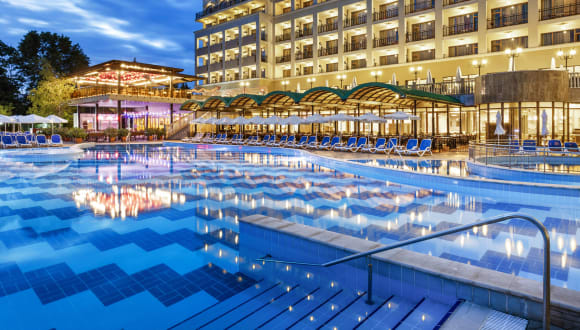 Das 4-Sterne-SOL Nessebar Bay & Mare Resort hat einen einmaligen und weitläufigen Grünpark, direkt am Strand mit wunderschönen Aussichten, eigenem Aquapark und in der Nähe von Sunny Beach und Nessebar, einem UNESCO-Weltkulturerbe. Ein All-inclusive-Hotel mit Spaß für die ganze Familie am Strand oder im fantastischen Aquapark. Perfekt entworfen, um sicherzustellen, dass die Eltern sich entspannen können, während die Kinder Freude haben. Das SOL Nessebar Bay & Mare Resort verfügt über ein reichhaltiges All-inclusive-Angebot sowie eine Vielzahl von Einrichtungen und Unterhaltungsmöglichkeiten, wie 6 Themenrestaurants, ein Innen- und verschiedene Außenpools mit Sonnenschirmen und Liegen, 5 Wasserrutschen, Sonnenterrasse, SPA-Center ,,Rose“, Rocky River Rutsche für Kinder, Kinderpool, Animations- und Entertainmentprogramm, Tennis Court, Fußball- und Basketballplatz, und vieles mehr.