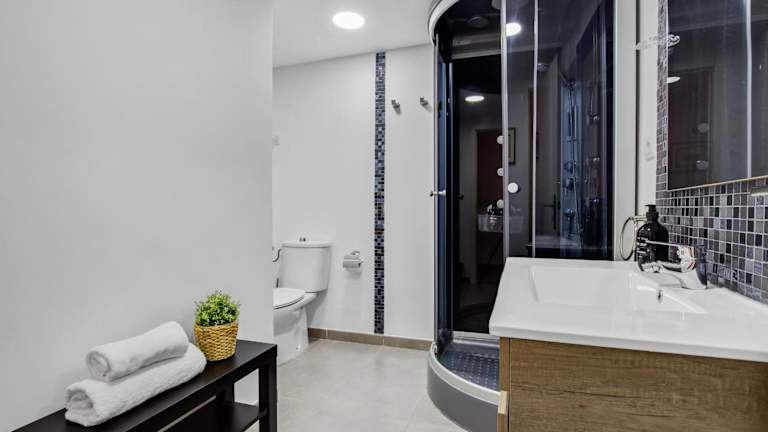 Die Ferienwohnung ist klimatisiert und beinhaltet ein Badezimmer mit Dusche sowie kostenlose Pflegeprodukte. Zur Ausstattung zählen auch eine Waschmaschine, ein Kühlschrank und eine Kaffeemaschine. Handtücher und Bettwäsche werden bereitgestellt.