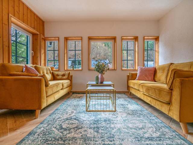 Die Unterkunft bietet Möglichkeiten zum Wandern und Angeln. Nach den Aktivitäten können die Gäste im Garten oder in der Gemeinschaftslounge entspannen.