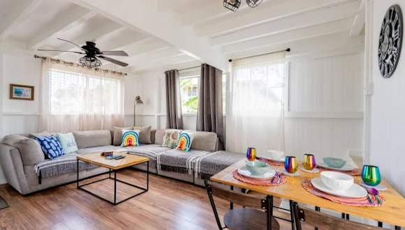 Das Somewhere over the Rainbow Loft with AC Hilo bietet eine voll ausgestattete Küche, die es den Gästen ermöglicht, ihre eigenen Mahlzeiten zuzubereiten. Für ein besonderes Erlebnis können Sie jedoch auch einen Grill auf der Terrasse nutzen.