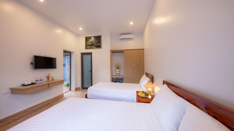 Die klimatisierten Zimmer im Son Doong Bungalow sind komfortabel eingerichtet und verfügen über Annehmlichkeiten wie einen Kühlschrank, eine Minibar, einen Wasserkocher und einen Schreibtisch. Die Badezimmer sind mit einer Dusche und einem Haartrockner ausgestattet. Jedes Zimmer bietet zudem einen eigenen Balkon mit Bergblick und einen Kleiderschrank.