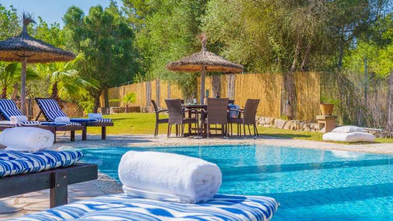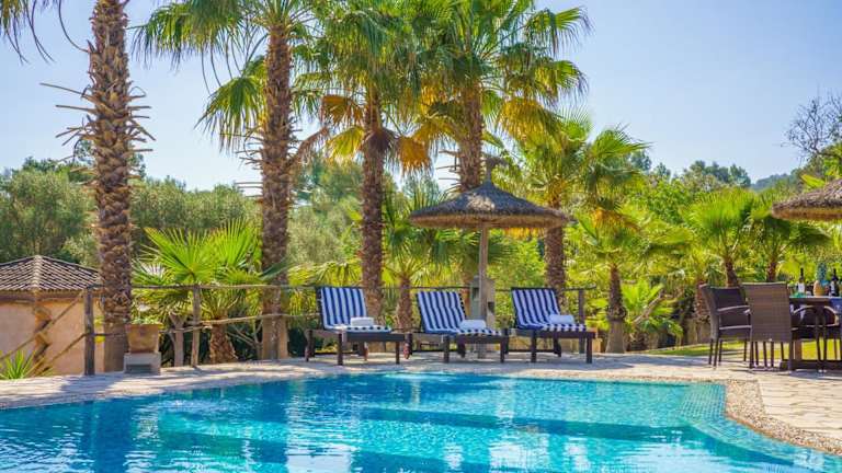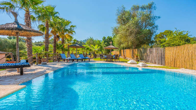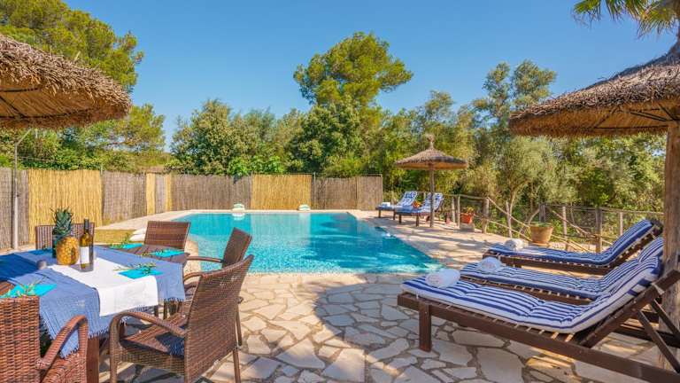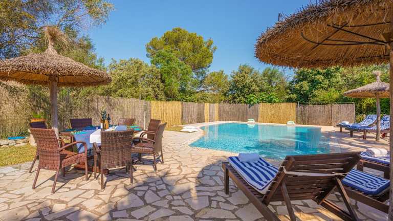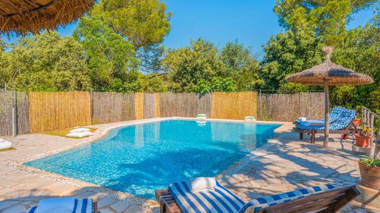 Die Villa Son Monserrat verfügt über 4 geräumige Schlafzimmer und 3 gut ausgestattete Badezimmer. Die Zimmer sind komfortabel eingerichtet und bieten Ihnen eine erholsame Atmosphäre. Die Villa ist mit Klimaanlage, kostenlosem WLAN und einem Flachbild-Sat-TV ausgestattet. Die voll ausgestattete Küche ermöglicht es Ihnen, Ihre eigenen Mahlzeiten zuzubereiten. Auf der Terrasse können Sie den Poolblick genießen und im Garten entspannen. Handtücher und Bettwäsche werden gestellt und können gegen Aufpreis gewechselt werden.