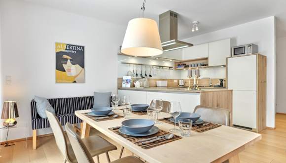 Das Apartment im Sonnenhaus Schladming Dachstein bietet alles, was Sie für einen komfortablen Aufenthalt benötigen. Es verfügt über ein geräumiges Wohnzimmer und eine voll ausgestattete Küche mit Geschirrspüler, Nespresso-Kaffeemaschine und Backofen. Für Ihre Unterhaltung steht ein Flachbild-TV mit Netflix zur Verfügung. Genießen Sie den Bergblick von Ihrem Apartment aus.
