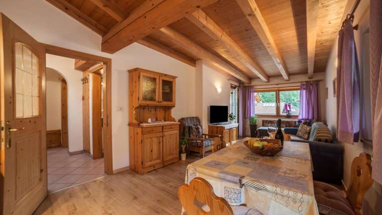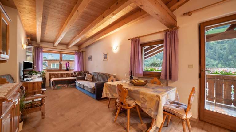 Die Ferienwohnung verfügt über ein Schlafzimmer und ein Wohnzimmer, ausgestattet mit einem TV. Zu den weiteren Annehmlichkeiten zählen ein Balkon mit Bergblick, eine gut ausgestattete Küche mit Kühlschrank und Herdplatte sowie ein Badezimmer mit Dusche. Handtücher und Bettwäsche stehen zur Verfügung.