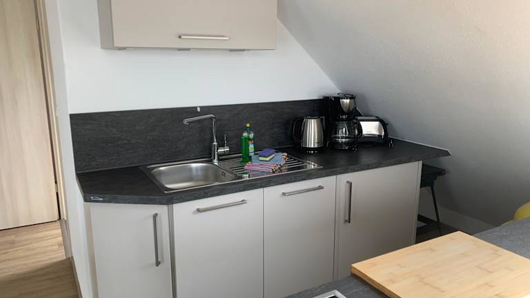 Die Ferienwohnung umfasst 1 Schlafzimmer, eine voll ausgestattete Küche mit Kühlschrank und Geschirrspüler, einen Flachbild-TV, einen Sitzbereich sowie ein Badezimmer mit Dusche. Handtücher und Bettwäsche werden bereitgestellt.