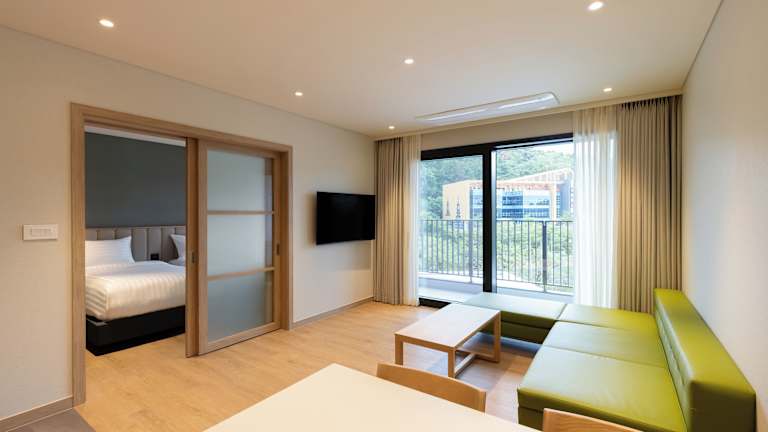 Das Daemyung Resort Gyeongju bietet 33 geräumige Zimmer im westlichen und koreanischen Stil. Jedes Zimmer verfügt über eine Küchenzeile mit Küchenutensilien und einen Essbereich. Die Zimmer sind mit Heizung, Klimaanlage, Kabel-TV und kostenfreiem WLAN ausgestattet. Ein Balkon oder eine Terrasse bietet einen schönen Blick auf die Umgebung.