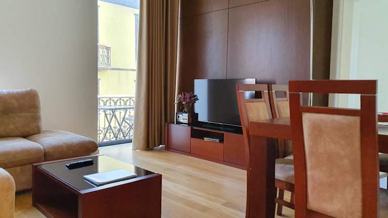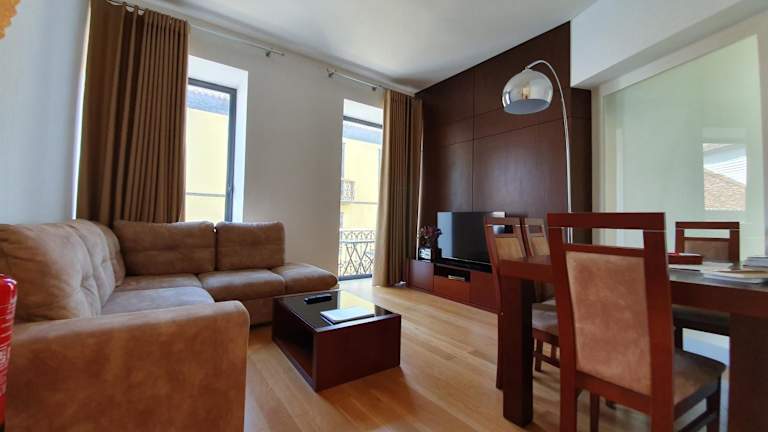 Die Wohnung umfasst ein Schlafzimmer und ein Badezimmer. Die Ausstattung beinhaltet Bettwäsche, Handtücher, einen Flachbild-TV mit Satellitenkanälen, einen Essbereich sowie eine voll ausgestattete Küche. Zudem steht ein Balkon mit Stadtblick zur Verfügung. Handtücher und Bettwäsche können auf Anfrage gegen Aufpreis bereitgestellt werden.