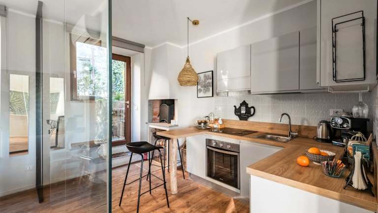 SopraBosco Calcata Art & Design Apartment bietet Übernachtungsmöglichkeiten in einer modernen Ferienwohnung mit einer Terrasse und Stadtblick. Kostenloses WLAN ist in der gesamten Unterkunft verfügbar. Die Wohnung ist klimatisiert und besteht aus einem Schlafzimmer sowie einem Wohnzimmer.