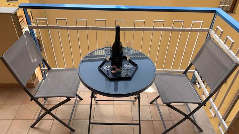 Die Unterkunft besteht aus einem Schlafzimmer und einem Wohnzimmer. Sie verfügt über eine voll ausgestattete Küche mit Kühlschrank und Kaffeemaschine. Zum weiteren Ausstattungsumfang gehören ein Badezimmer mit Bidet und Dusche, sowie Balkon mit Stadtblick. Handtücher und Bettwäsche sind im Angebot enthalten. Die Räume sind schallisoliert und allergikerfreundlich.