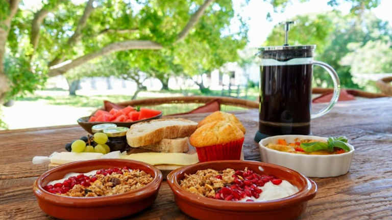 Die Gäste können zwischen verschiedenen Frühstücksoptionen wie einem kontinentalen sowie einem vegetarischen Frühstück wählen. Es wird zudem ein Zimmerservice angeboten, der Essenslieferungen in die Unterkunft ermöglicht.
