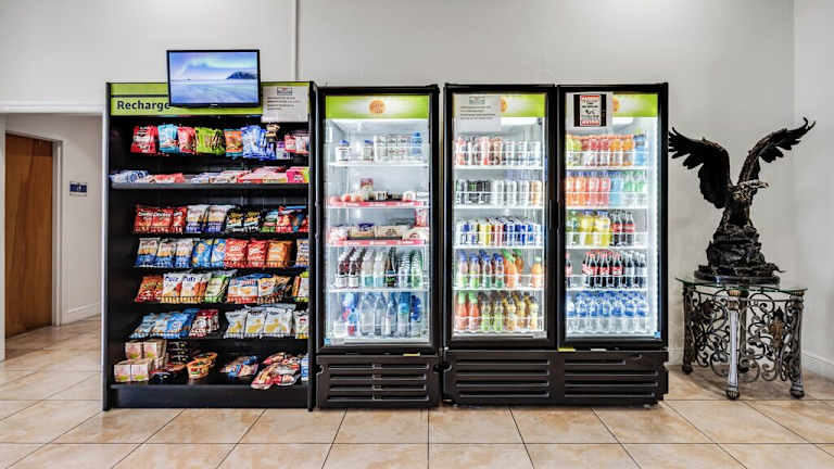Es besteht die Möglichkeit zur Essenslieferung in die Unterkunft. Es sind Snack- und Getränkeautomaten vorhanden, jedoch keine weiteren Informationen zur Verpflegung angegeben.