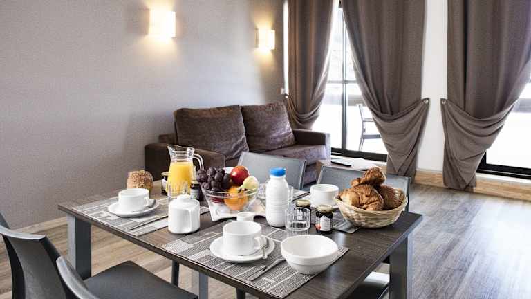 Das Hotel bietet 70 Zimmer, darunter 20 Junior-Suiten, 10 Einzelzimmer und 40 Doppelzimmer. Die Zimmer sind komfortabel eingerichtet und verfügen über moderne Annehmlichkeiten wie einen Flachbild-Sat-TV, einen Safe und ein Sofa. Ein eigenes Badezimmer mit Dusche und Badewanne sowie ein Haartrockner sind ebenfalls vorhanden. In der voll ausgestatteten Küchenzeile finden Sie eine Mikrowelle, einen Geschirrspüler, eine Kaffeemaschine und einen Toaster. Einige Zimmer verfügen zudem über einen Balkon.