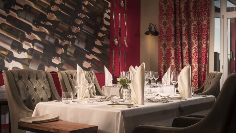Genießern bietet das Haus mit sieben verschiedenen Restaurants eine breite kulinarische Auswahl: in der GolfHütte werden Sie im Sommer mit vitalen Snacks sowie kleinen Speisen und im Winter mit Fonduevariationen verwöhnt. Erlesene regionale und internationale Wurst- und Käsespezialitäten, sowie kleine ausgewählte Speisen in Form einer Brotzeit werden Ihnen in unserer KornKammer serviert. in unserem Spa-Restaurant LindenBistro genießen Sie eine kulinarische Fusion aus mediterran-marokkanischer Küche mit außergewöhnlich aromatischen und leichten Kompositionen. Unser Fine-Dining Restaurant The First bietet Ihnen die Möglichkeit, italienischen Charme auf höchstem kulinarischem Niveau zu genießen. Exklusive Abendmenüs- oder Buffets bietet Ihnen das Restaurant Augusta an. In unserem Sternerestaurant Masters werden Ihnen in einem einmaligen Ambiente aus Gemütlichkeit und Eleganz erlesene Menükompositionen serviert. Chef de Cuisine Danny Schwabe offeriert seinen Gästen eine frankophile Küche mit regionalen Einflüssen unter Verwendung von nachhaltigen, qualitativ hochwertigen Produkten. In der Grand Slam Bar lassen Sie Ihren Abend ausklingen oder genießen Ihren Wein oder Aperitif in der Bobby Jones Smokers Lounge, auch gern bei einer Zigarre. Liebhaber der regionalen Küche werden im Restaurant "Zum güldenen Zopf" in Blankenhain mit den Klassikern der Thüringer Spezialitäten verwöhnt.
