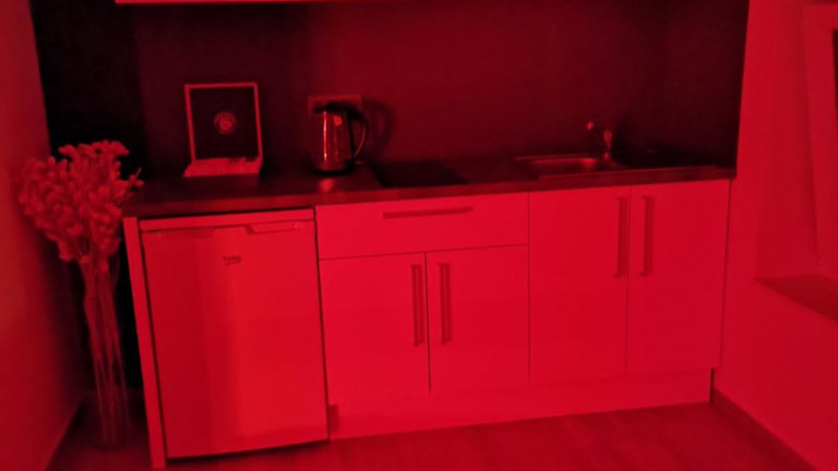 Die Ferienwohnung umfasst ein Schlafzimmer, eine Küche mit Kühlschrank und Herdplatte, einen Flachbild-TV, einen Sitzbereich sowie ein Badezimmer mit Badewanne oder Dusche. Handtücher und Bettwäsche werden bereitgestellt.