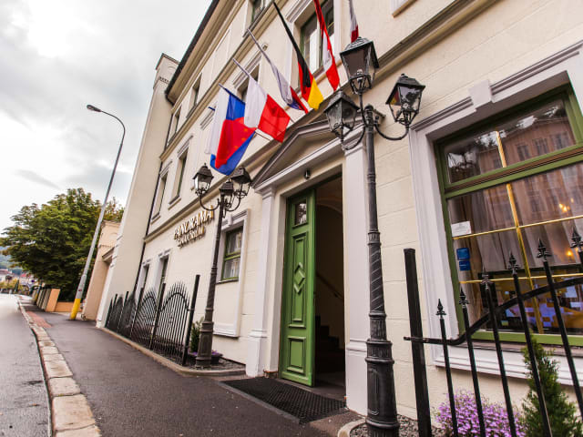 Das Spa Hotel Panorama liegt im Herzen des Kurorts Karlovy Vary (Karlsbad). Auf der einen Seite gibt es einen schönen Blick auf die kürzlich restaurierten Kuranlagen der Stadt, einer der malerischsten Orte in der tschechischen Republik, auf der anderen Seite Märchenwälder, die ideal für ruhige Sparziergänge am Nachmittag sind. Das Hotel ist 10 Minuten von der Mineralquelle entfernt, die in der Hauptstraße liegt. Kleine Cafés mit Außenbereichen im Sommer und heißen leckeren Kaffees im Winter sind ebenfalls nur 10 Minuten entfernt. Zu Fuß zu erreichen ist ein großes Theatergebäude , wie ein Schwimmbad mit Mineralwasser und einer Reihe weiterer kultureller gesundheitlichen Stationen.