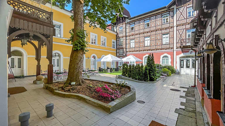 Das Hotel Three Lilies befindet sich in Franzensbad, etwa 38 km von der Kolonnade an der Singenden Fontäne entfernt. Die Unterkunft liegt zentral und bietet eine gute Anbindung an die Sehenswürdigkeiten der Stadt. Die Singende Fontäne, die Mühlenkolonnade und die Marktkolonnade sind alle innerhalb einer kurzen Fahrstrecke erreichbar. Die Thermalquelle und das Naturschutzgebiet Soos sind ebenfalls in der Nähe.