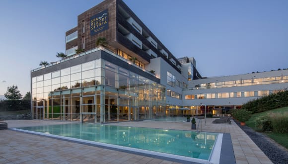Inmitten der sanften Hügel des Thermen- und Vulkanlandes gelegen, empfängt Sie das Adults only- SPA RESORT STYRIA****S mit RELAX, SPORT und HEALTH. Der 2.500m2 Wellnessbereich mit sprudelndem Thermalwasser und ganzjährig beheiztem Sport-Außenbecken, die wohlige Wärme der Saunen sowie die sonnenverwöhnte Region rund um Bad Waltersdorf, sind ideale Garanten für Ihre Wellness- oder Aktivauszeit. Radfahren, Nordic Walken, (Wein-)Wandern oder Golfen direkt gegenüber vom Hotel – das SPA RESORT STYRIA ist Ihr idealer Ausgangspunkt für bewegende Momente als Ausgleich zu unseren Wellnessanwendungen. Abgerundet wird Ihr Aufenthalt im Panoramarestaurant mit regionalen Gaumenfreuden die kreativ interpretiert und international abgeschmeckt werden. Spa Resort Styria A-8271 Bad Waltersdorf 351, Steiermark Tel +43 / (0)3333 / 31 065 Fax +43 / (0)3333 / 31 065 – 900 reservation@sparesortstyria.com www.sparesortstyria.com