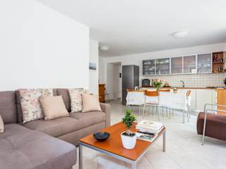 Die Wohnung verfügt über eine voll ausgestattete Küche, einen Essbereich, einen Flachbild-TV sowie Bettwäsche und Handtücher. Zusätzliche Annehmlichkeiten umfassen eine Terrasse mit Gartenblick, Klimaanlage, kostenloses WLAN und eine Gartenfläche.