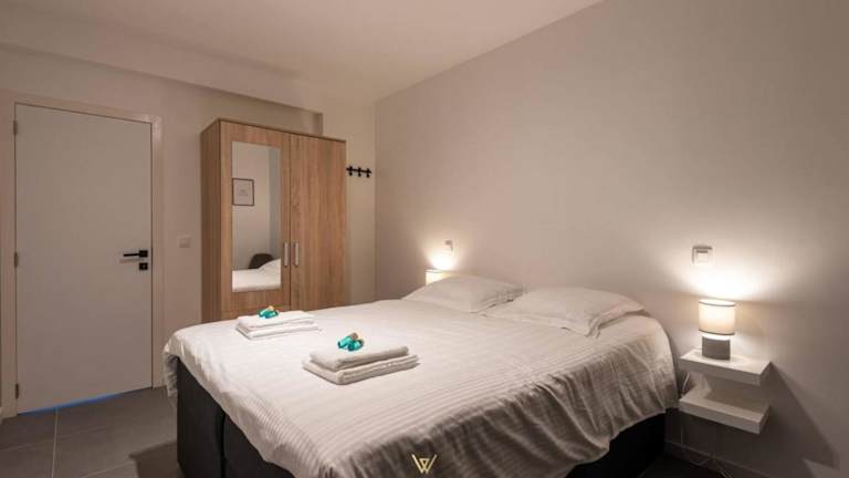 Die Ferienwohnung umfasst zwei Schlafzimmer und ein Badezimmer mit Dusche. Die voll ausgestattete Küche enthält einen Kühlschrank und eine Kaffeemaschine. Handtücher und Bettwäsche werden bereitgestellt und die Wohnung wird zwischen den Aufenthalten desinfiziert. Es sind Nichtraucherzimmer vorhanden.
