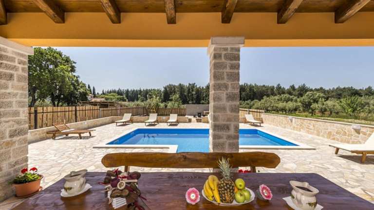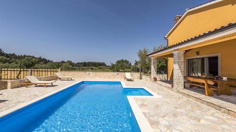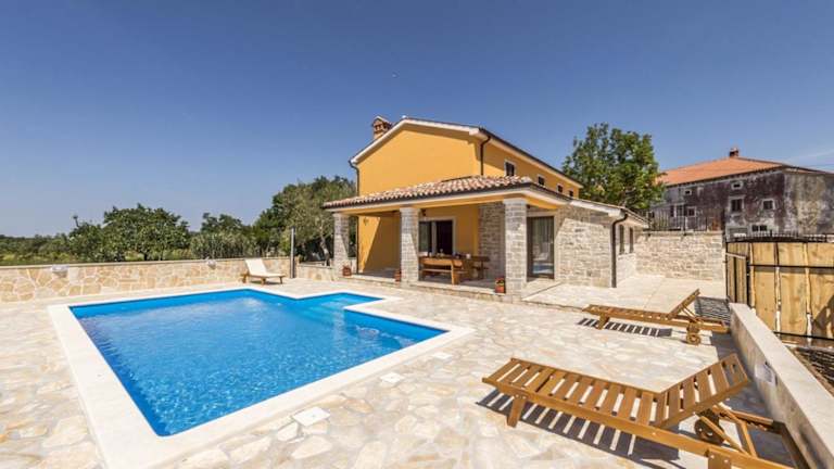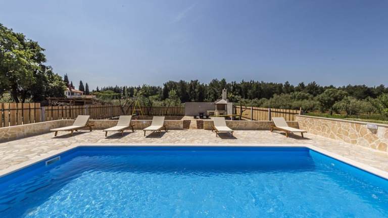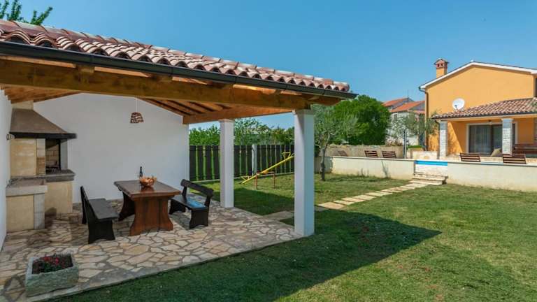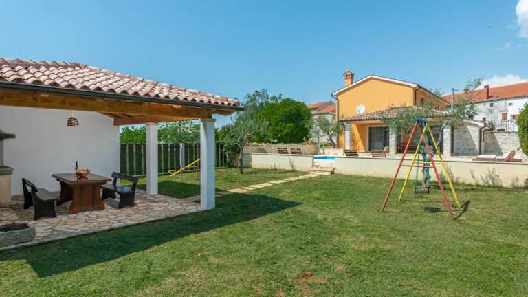 In der Villa gibt es einen eigenen Außenpool, in dem Sie sich an heißen Tagen abkühlen können. Die Umgebung bietet viele Möglichkeiten für Outdoor-Aktivitäten wie Wandern und Radfahren. Besuchen Sie auch die nahe gelegenen Sehenswürdigkeiten wie das Amphitheater in Pula und den Aquapark in Poreč.