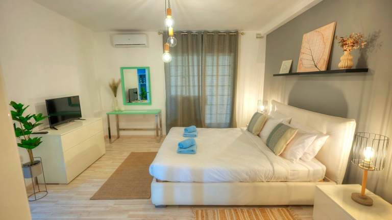 Die Ferienwohnung Spacious seafront 3 bedrooms - balcony GOSLM-7 bietet klimatisierte Übernachtungsmöglichkeiten mit einem Balkon und kostenlosem WLAN sowie Meerblick.