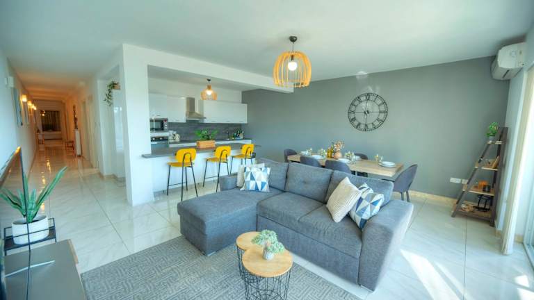 Die Wohnung verfügt über 3 Schlafzimmer und eine Küche, die mit einem Kühlschrank und einem Geschirrspüler ausgestattet ist. Zur Ausstattung gehören ein Flachbild-TV, ein Sitzbereich und 2 Badezimmer mit Dusche. Handtücher und Bettwäsche werden bereitgestellt.