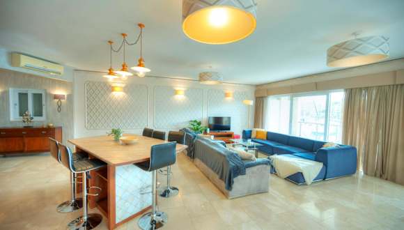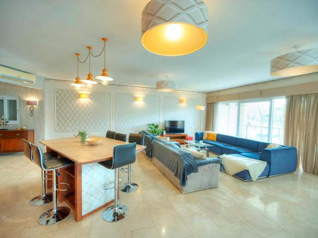 Die Unterkunft Spacious Seafront 3bedrooms, sea view balcony GOTAX-1 bietet eine geräumige Ferienwohnung mit Blick auf das Meer. Die Wohnung verfügt über eine Terrasse und Annehmlichkeiten wie kostenfreies WLAN und Klimaanlage, um den Komfort der Gäste zu gewährleisten.