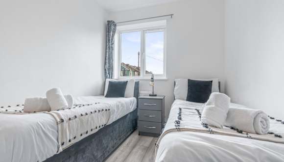 Das Apartment verfügt über 2 Schlafzimmer, ein Wohnzimmer und eine voll ausgestattete Küche. Die Zimmer sind geräumig und komfortabel eingerichtet, um den Gästen einen angenehmen Aufenthalt zu ermöglichen. Die Küche ist mit einem Kühlschrank und einem Wasserkocher ausgestattet, so dass die Gäste ihre eigenen Mahlzeiten zubereiten können. Das Apartment verfügt auch über ein Badezimmer mit Dusche und Haartrockner. Handtücher und Bettwäsche werden gestellt, um den Gästen maximalen Komfort zu bieten.
