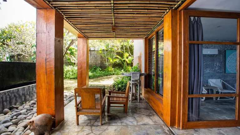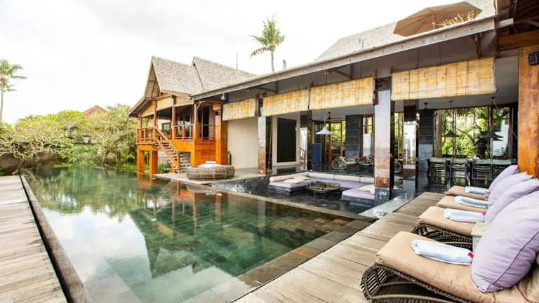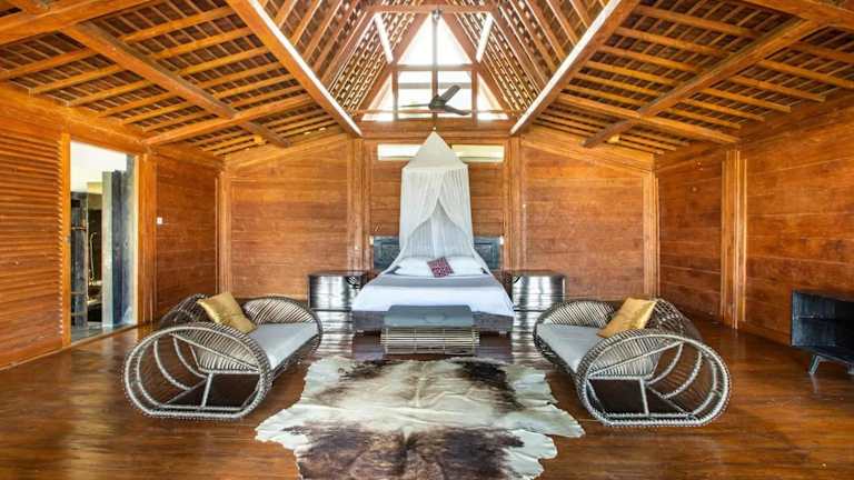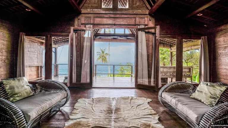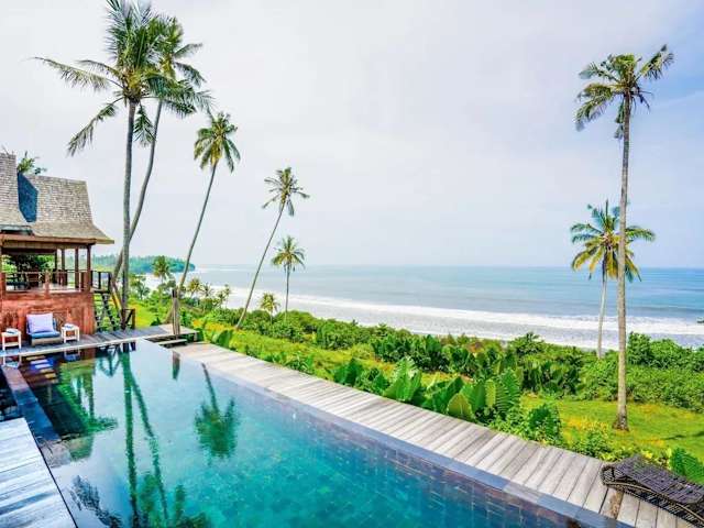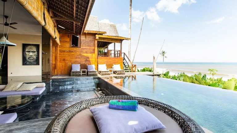 Die Villa mit 4 Schlafzimmern befindet sich im Kabupaten de Tabanan und bietet einen wunderschönen Blick auf das Meer. Der Strand Balian ist nur 2,1 km entfernt und lädt zum Entspannen und Sonnenbaden ein. In der Nähe finden Sie auch den Strand Bonian und den Tempel Tanah Lot, die beide einen Besuch wert sind. Der internationale Flughafen Denpasar ist etwa 60 km entfernt und bietet eine gute Anbindung an die Villa.