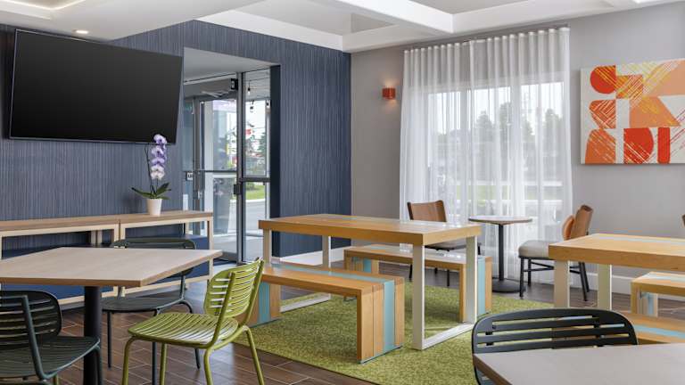 Spark by Hilton Woodstock bietet eine komfortable Unterkunft mit insgesamt 72 Zimmern, die per Aufzug erreichbar sind. Die Rezeption ist freundlich besetzt und stets bereit, bei Fragen zu helfen. Das Haus ist mit verschiedenen Annehmlichkeiten ausgestattet, darunter ein Geldautomat und WLAN. Zudem sind rollstuhlgerechte Einrichtungen vorhanden. Für die Anreise mit dem Auto stehen sowohl ein kostenfreier Parkplatz als auch eine kostenpflichtige Garage zur Verfügung. Zu den Dienstleistungen gehören Zimmerservice, Wäscheservice und eine Münzwäscherei. Im Business-Center stehen Faxgeräte zur Verfügung, und es gibt drei Konferenzräume für verschiedene Veranstaltungen.