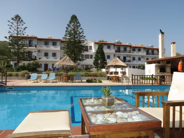 Buchen Sie das Spiros-Soula Family Hotel & Apartments für einen erholsamen Urlaub in Lygaria. Das familiengeführte Hotel bietet geräumige Zimmer mit Balkon und Panoramablick auf die Bucht Agia Pelagia. Genießen Sie den großen Pool und den 8000 m² großen Garten. Im Bar-Restaurant können Sie traditionelle, hausgemachte Spezialitäten probieren. Der Strand von Lygaria ist mit einem Minibus erreichbar. Kostenloses WLAN und Parkplätze stehen zur Verfügung.