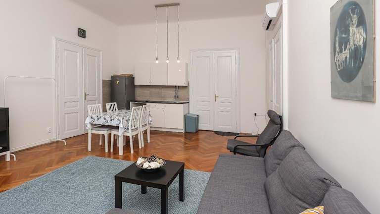Die Ferienwohnung umfasst ein Schlafzimmer, eine voll ausgestattete Küche mit Kühlschrank und Ofen, ein Badezimmer mit Badewanne sowie einen Sitzbereich. Zur Ausstattung gehören ein Flachbild-TV, kostenloses WLAN, Klimaanlage sowie Handtücher und Bettwäsche.