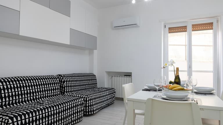 Das klimatisierte Apartment im Splendido alloggio di Noemi verfügt über ein Schlafzimmer, ein Wohnzimmer, eine voll ausgestattete Küche mit Kühlschrank und Kaffeemaschine sowie ein Badezimmer mit Bidet und Dusche. Handtücher und Bettwäsche werden gestellt.