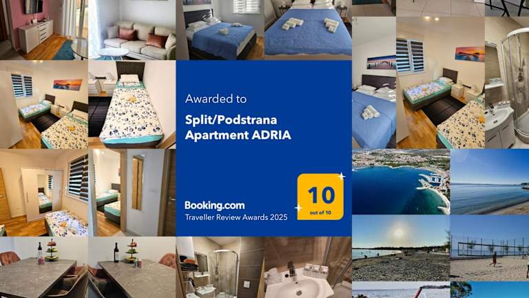 Die Unterkunft befindet sich in Split/Podstrana und liegt direkt am Strand, etwa 700 m vom Strand Strožanac entfernt. Der Diokletianpalast und das Mladezi Park-Stadion sind jeweils 8,6 km entfernt. Der nächstgelegene Flughafen, der Flughafen Split, ist 23 km entfernt.