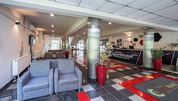 Das Sport Hotel bietet komfortable Zimmer und eine angenehme Atmosphäre für einen erholsamen Aufenthalt. Die Zimmer sind mit allen Annehmlichkeiten ausgestattet, die Sie benötigen, um sich wie zu Hause zu fühlen. Das Hotel verfügt auch über Fitnesseinrichtungen und ein Solarium, in denen Sie sich aktiv erholen können.