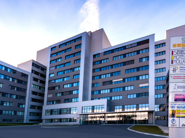Das Hotel liegt verkehrsgünstig - in der Nähe des Bahnhofs. Das Zentrum von Hollabrunn ist in 10 Gehminuten zu erreichen. Kostenfreier Parkplatz ist neben dem Sport- und Seminarhotel verfügbar.