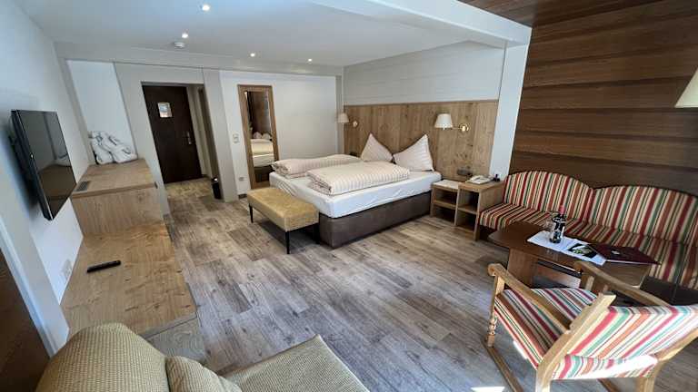 Das Hotel bietet insgesamt 53 Zimmer, die alle einen hohen Komfort und eine gemütliche Atmosphäre bieten. Jedes Zimmer verfügt über eine Heizung, einen Safe, einen Schreibtisch, einen Kühlschrank und einen Balkon oder eine Terrasse. Zur Ausstattung gehören auch ein Direktwahltelefon, ein TV-Gerät mit Satelliten- / Kabelempfang, ein Radio und kostenfreies WLAN. Die Badezimmer sind mit einer Dusche oder einer Badewanne sowie einem Haartrockner und kostenlosen Kosmetikartikeln ausgestattet.