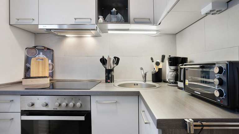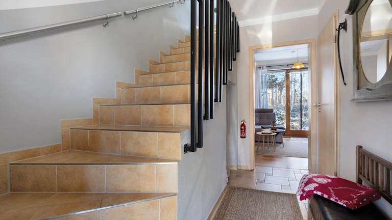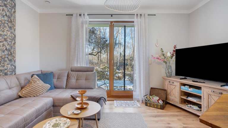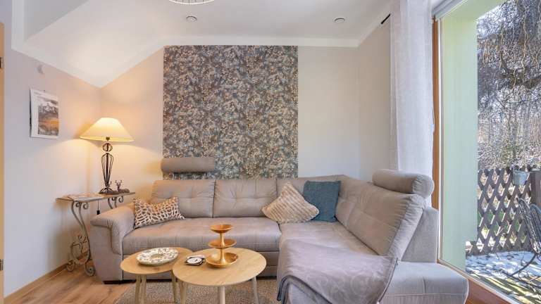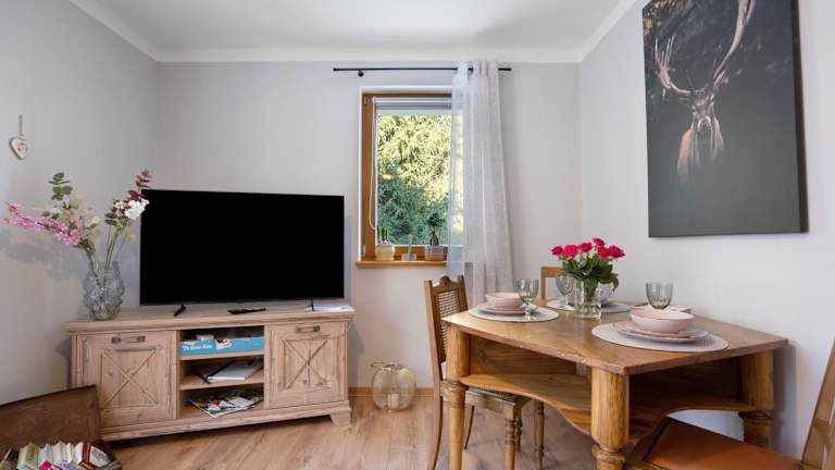 Die Ferienwohnung umfasst ein Schlafzimmer, ein Wohnzimmer sowie eine gut ausgestattete Küche mit Kühlschrank und Geschirrspüler. Des Weiteren gibt es ein Badezimmer mit Dusche. Zur Ausstattung gehören ein TV sowie Handtücher und Bettwäsche. Eine Terrasse mit Blick auf den Fluss ist ebenfalls vorhanden.